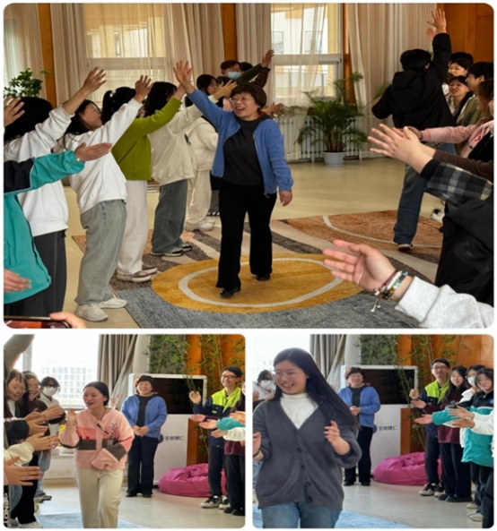 在第一阶段,首先进行的是热情洋溢的热身活动——击掌问好,同学们在欢快的笑声中放松自己,在手与手的接触中感受彼此支持,在温暖的问候中传递着相互关爱,瞬间营造了凝聚而热烈的团体辅导活动氛围。