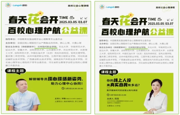 为深入贯彻《全面加强和改进新时代学生心理健康工作专项行动计划》,营造积极向上的校园心理文化氛围,助力师生以积极健康的心态迎接春季学习生活。兰州现代职业学院联合全国应用心理服务行业产教融合共同体、朗心心理共同举办“春天花会开”百校心理护航公益课程活动。